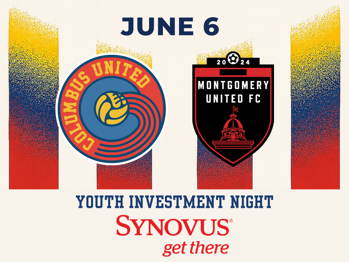Join us as we play against Montgomery United! Join us in celebrating Youth Investment Night presented by Synovus. First 500 fans receive a FREE Synovus x Columbus United co-branded item!