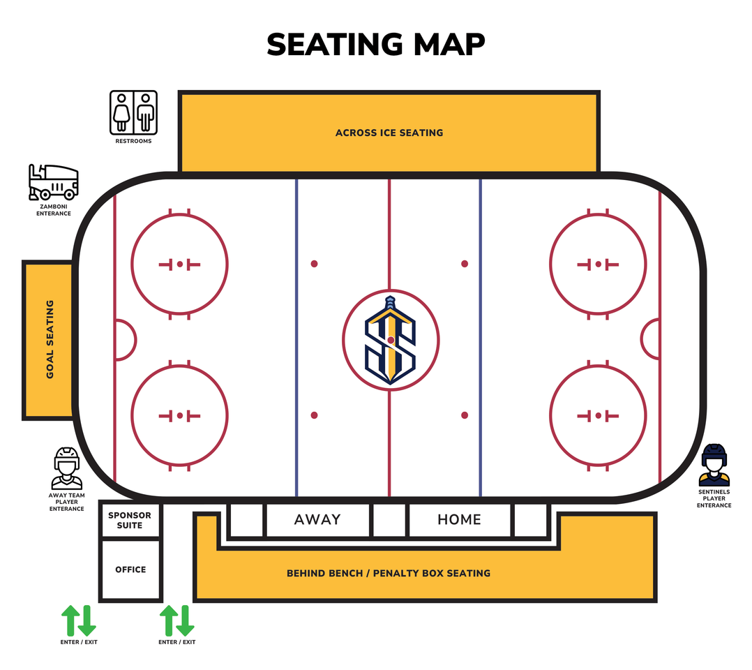 Across the ice for a perfect view, every period. Sit across from the benches and take in the full sweep of the action. A great vantage point for fans who want to see plays develop and goals unfold in real time. OR Get up close to the intensity! Behind the bench seats put you right behind the player benches. Feel the energy, hear the chatter, and experience the game like you're part of the team.